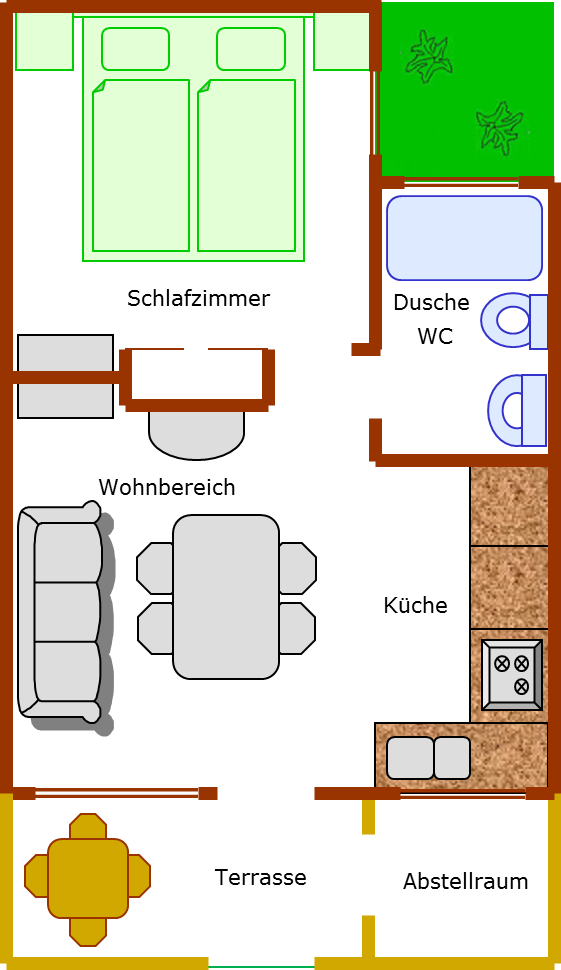 3 Personen. Essbereich mit Sitzgelegenheit für 4 Personen.