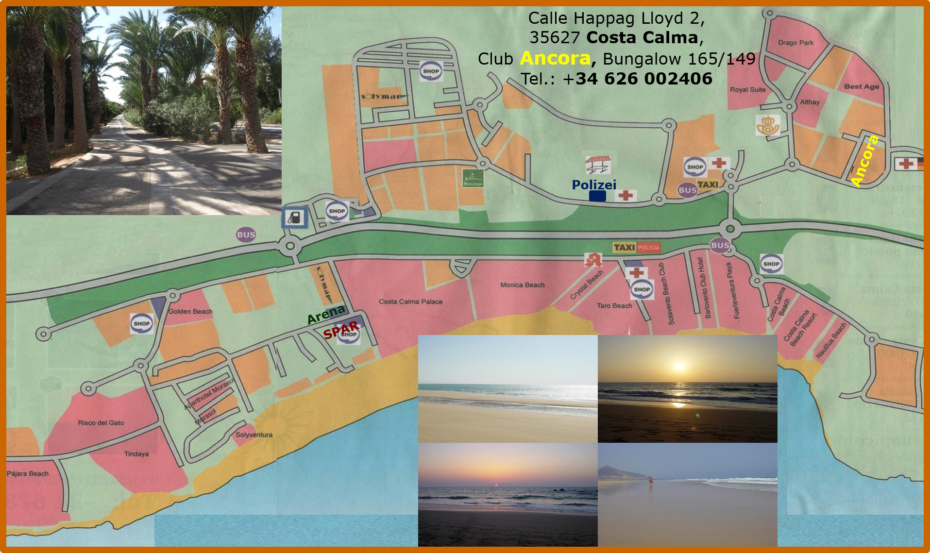 Costa Calma ist ein ruhiger Ferienort. Er verfügt über viele Einkaufsmöglichkeiten und eine große Anzahl von Restaurants verschiedener Preisklassen. Eine gute ärztliche Versorgung durch deutsche Ärzte und Zahnärzte ist vorhanden. Hier, an der Costa Calma können Sie sich Ihren Traum erfüllen!